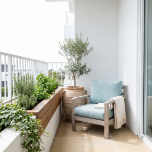 - Small balcony: one statement piece behind seating, so your eye lands somewhere soothing