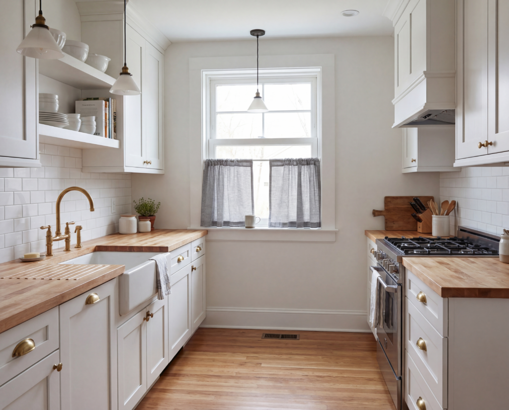 If you’re trying to figure out how to choose, style, and hang cafe curtains in a kitchen — whether you’re building, renovating, or just finally dealing with that sad bare window over the sink — this post is everything I’ve collected. The good fabrics, the right colors, the placement trick nobody explains, all of it.