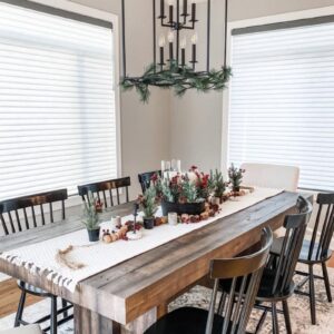 Two low bowls perched on woven stands, filled with pine, cedar, magnolia, cones and red twigs—simple, lush, done. The resident pup approves (obviously). Consider it a weekend project under the banner of diy Christmas planter ideas; it’s one of those easy Christmas planter ideas you can finish in 20–30 minutes, tops. Hot cocoa / holiday playlist mandatory!