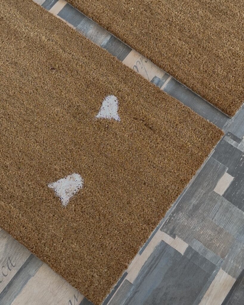 Shake or vacuum the coir so paint sticks well. Protect your floor—coir sheds a bit.
