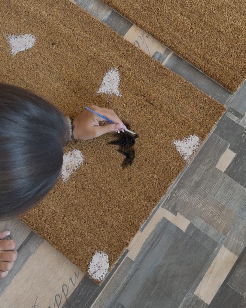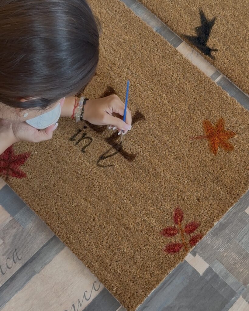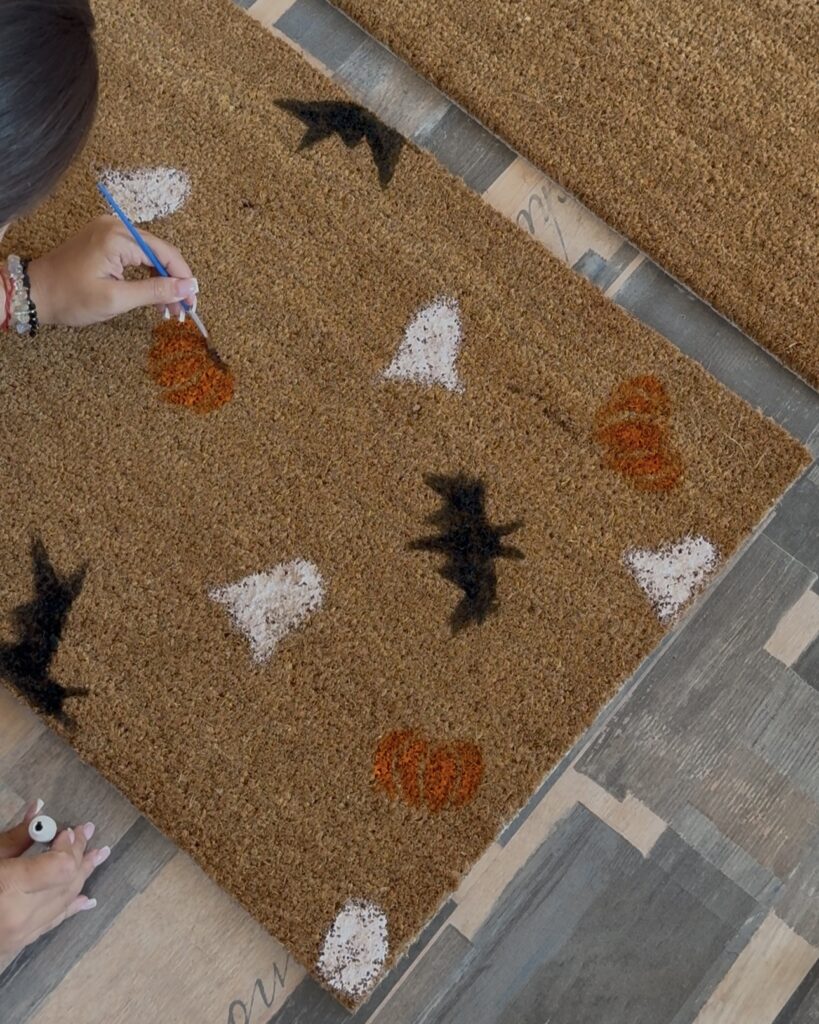 Using a detail brush, add “Boo,” “Hey Boo,” or “Trick or Treat.” Outline first, then fill so it reads well from the curb. This simple step turns it into a personalized fall diy doormat.