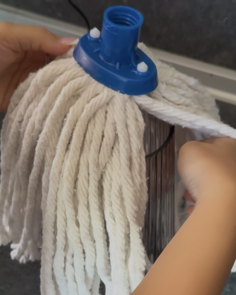 If your vase is slippery, a rubber band around the top (hidden under the mop) can keep things from shifting.