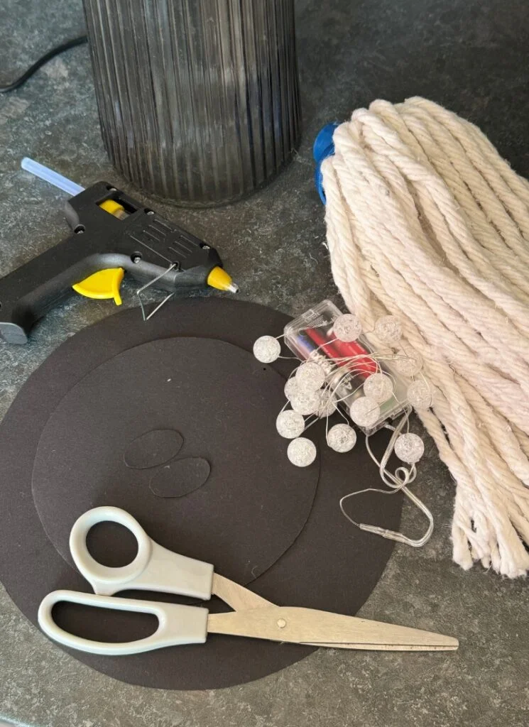 Tip: If you want everything to be removable, use glue dots or double-sided tape instead of hot glue on the vase/mop.