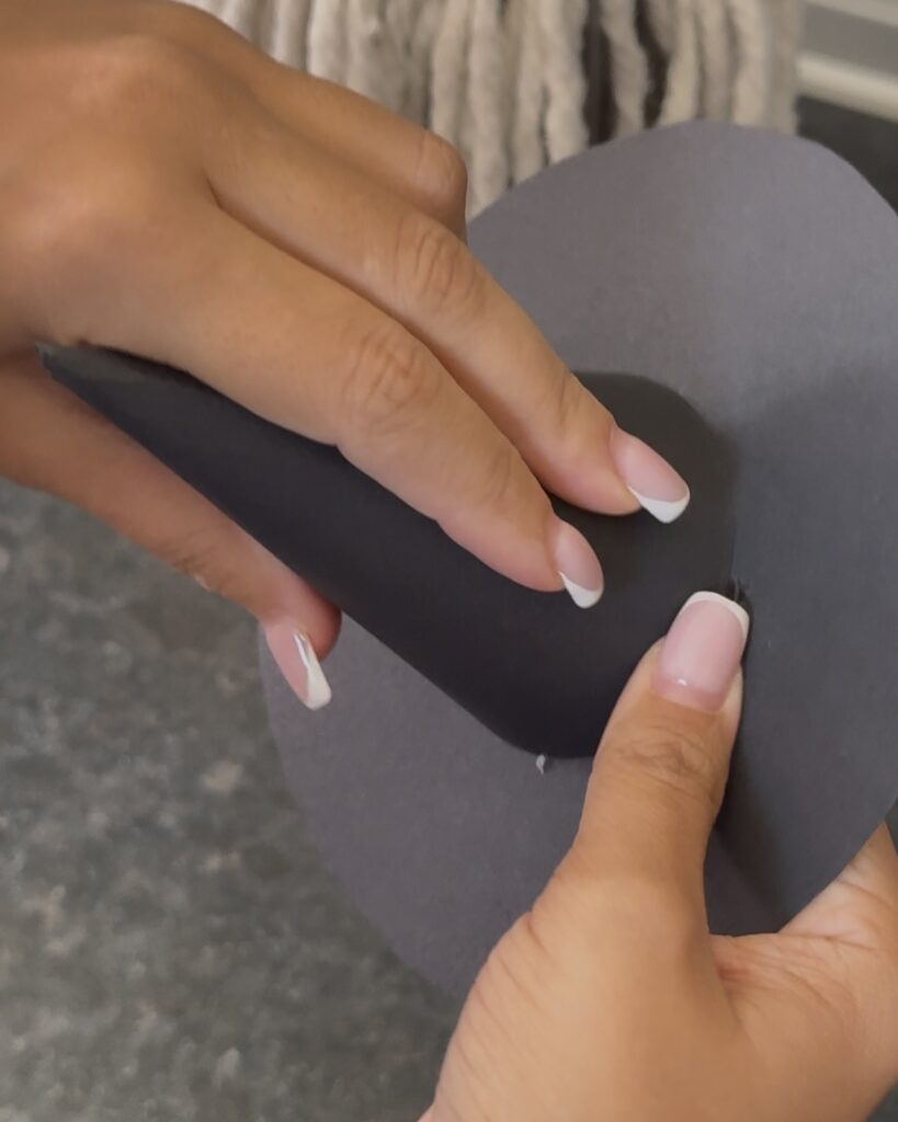 One second circle that you’ll turn into a cone. Snip out a pie-shaped wedge from this circle (like in the photos), then overlap the cut edges and roll into a cone. Trim the base so it sits flat.
