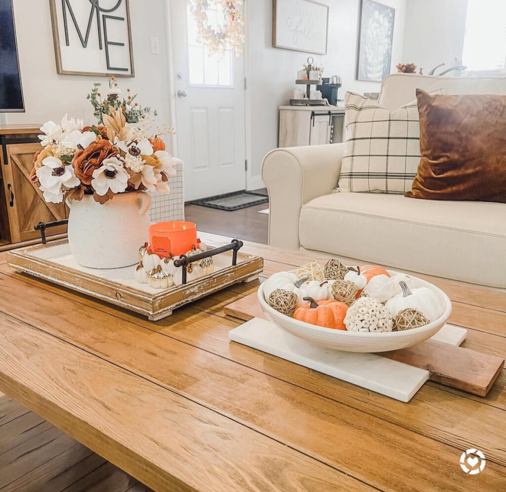 I don’t know about you, but the second the air even thinks about getting crisp, my coffee table starts begging for a little outfit change. Nothing wild—just a tray here, a candle there, a branch that looks like it was plucked on a walk (it wasn’t, but we can pretend).