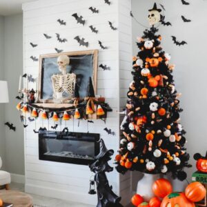 Removable bats climb the doors, a poseable skeleton wears the hat, and suddenly dinner feels like theater. The best part? It’s renter-friendly kitchen halloween ideas that peel off the minute November shows up.