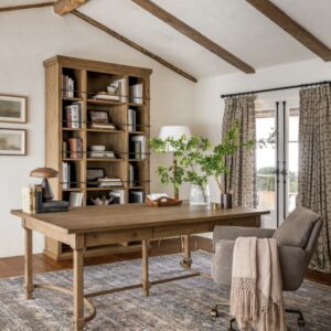 - Keep the big stuff neutral (walls, desk), then bring in color with one hero (a rug, curtains, painted built-ins).