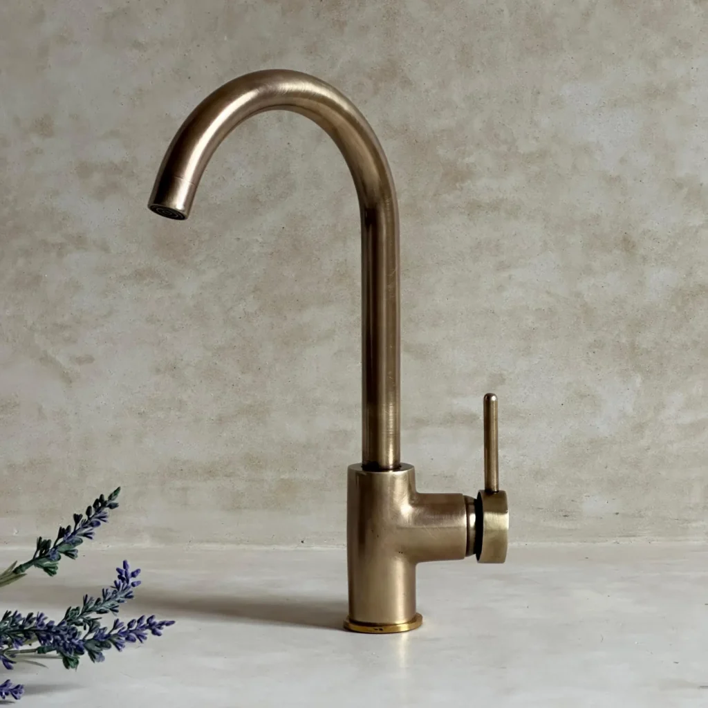 Brass Kitchen Faucet / Hand Carved Root Wood Bowl
