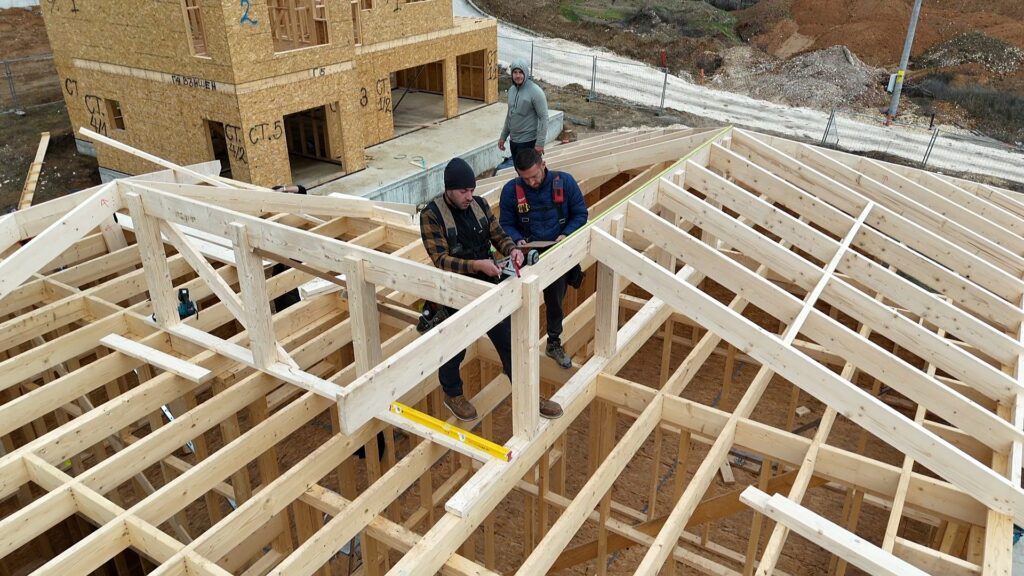 You’ll notice that not all roof areas were closed at once. Some of the lower sections are still at the structural stage, with the joist grid exposed. That’s intentional. Those areas will receive a different roofing system later, suited for low-slope surfaces, and closing them prematurely would only complicate things. This whole phase is about sequencing — doing things in the right order, not rushing just to say something is “finished.”